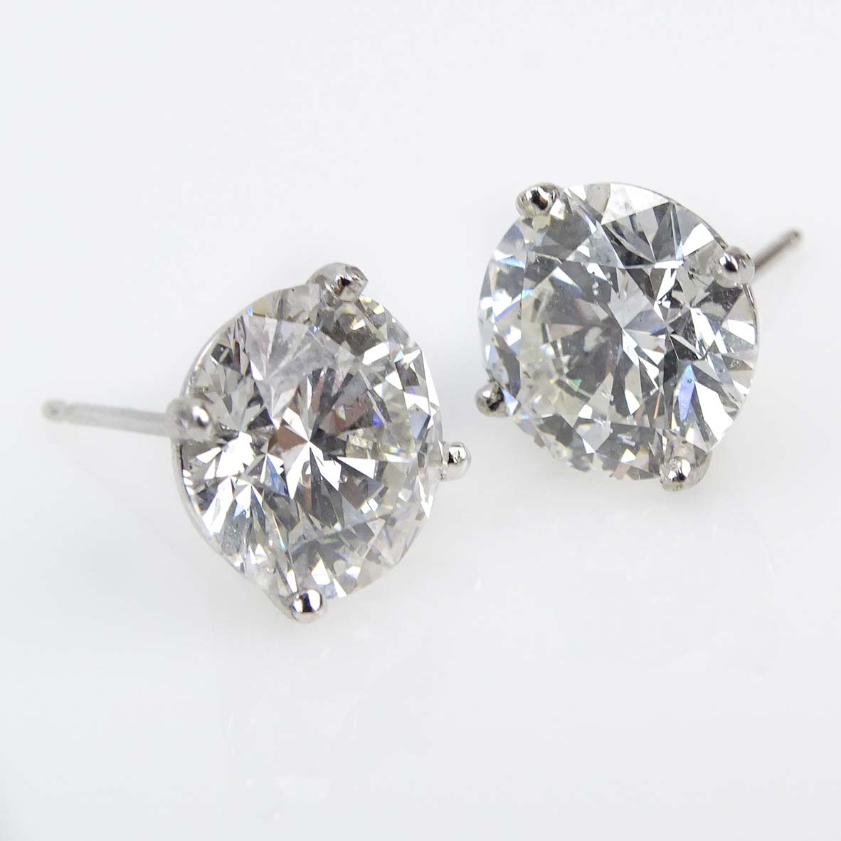 GIA Certified 6.02 Carat TW Round Brilliant Cut Diamond and 18 Karat White Gold Ear Studs.