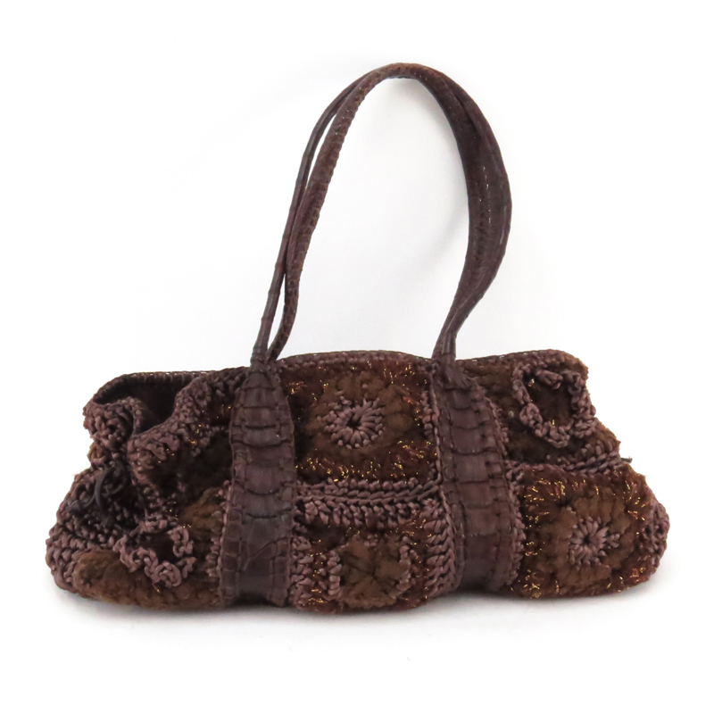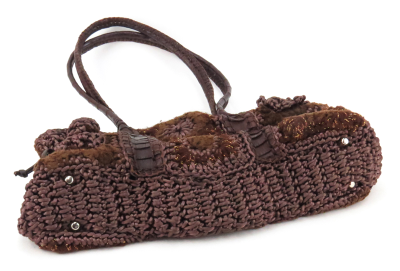 Carlos Falchi Brown "Fatto a Mano" Crocheted Bag.