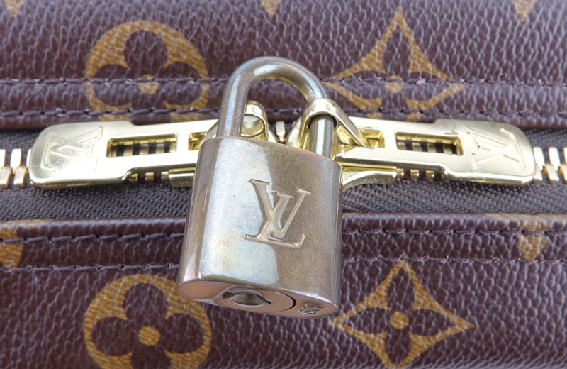 Louis Vuitton Sirius 45 Soft Sided Luggage. Monogram canvas, natural cowhide trim, washable canvas lining. Golden brass pieces, double-zip closure, rounded leather handles, removable ID holder. “As New” condition with only light soiling on corners from storage. Measures 18” x 12-1/2” x 6”. Original dust bag. Shipping $115.00 (estimate $900-$1100)