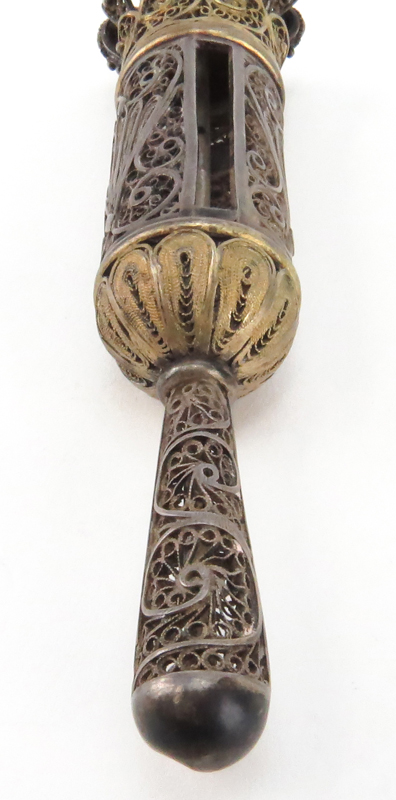 Antique Continental Silver Filigree Torah/Prayer Scroll Holder. Needs cleaning. Measures 5-1/2" Long. Weighs approx. 2.3 Troy ounces. Shipping $32.00 (estimate $100-$150)