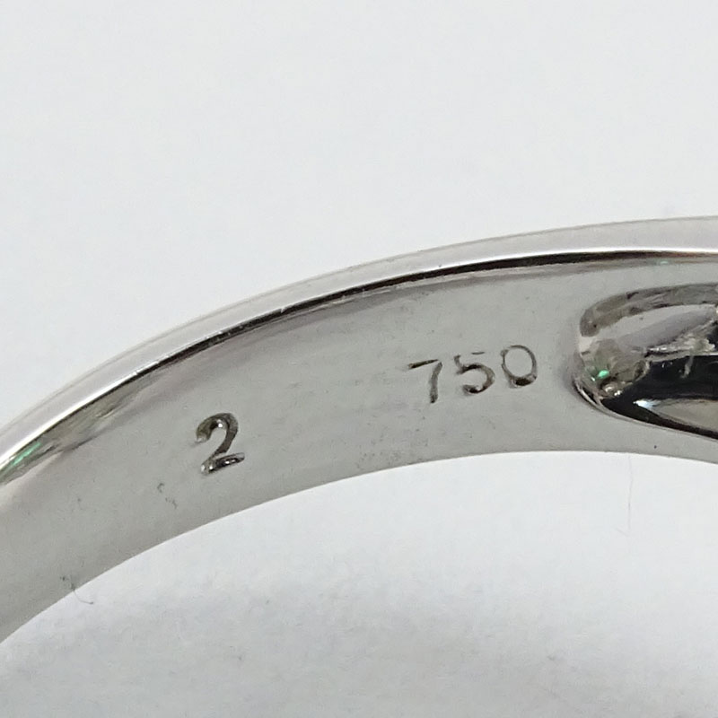 Approx. 2.16 Carat Oval Cut Emerald, 1.76 Carat TW Diamond and 18 Karat White Gold Ring. Emerald with vivid saturation of color. Stamped 18K. Very good condition. Ring size 7. Approx. weight: 6.4 grams. Shipping $28.00 (estimate $4300-$6300)