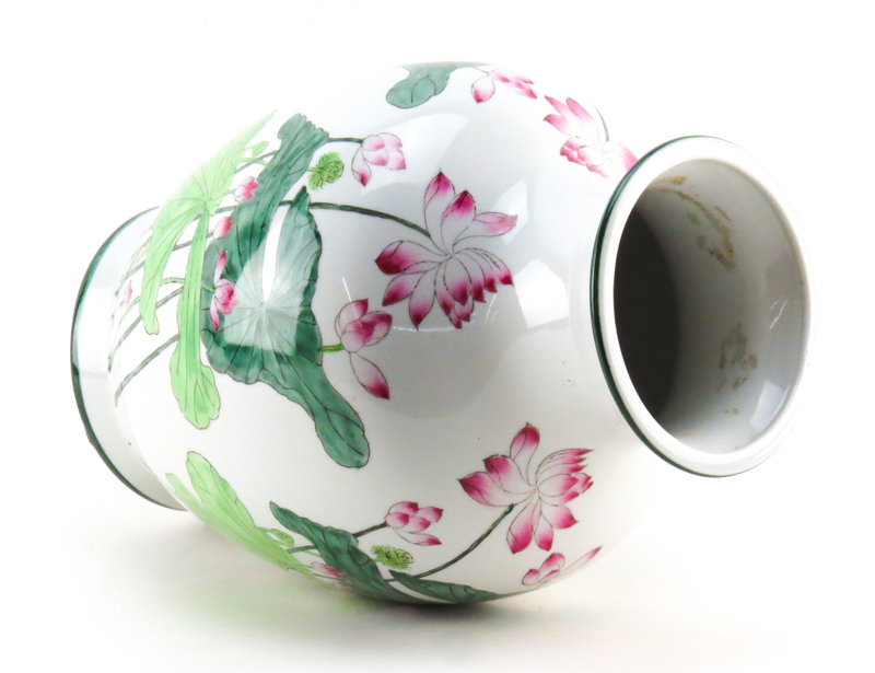 Modern A Nora Fenton Design Porcelain Floral Vase. Baluster form vase with flower motif. Stamped to base. Good condition. Measures 12-1/2" H. Shipping: Third party (estimate $50-$100)