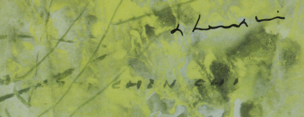 Chen Chi, Chinese American (1912-2005) Color Lithograph "Figures In A Wood" Signed in Marker Lower right.