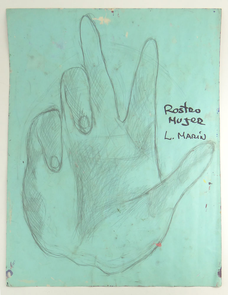 Luis Martin Marin, Cuban (born 1948) 1989 Acrylic on Paper, Portrait. Pencil Drawing en verso "Rostro Mujer". Each Signed. Good Condition. Measures 25-1/2 Inches Tall and 19-5/8 Inches Wide, Unframed. Shipping $85.00 (estimate $200-$400)