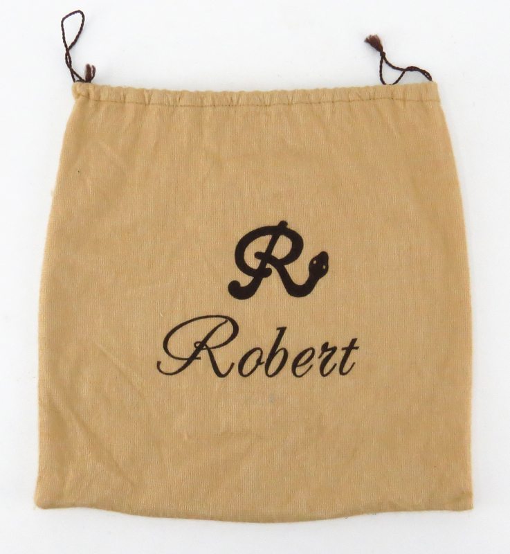 Aubergine Python Shoulder Flap Hand Bag By Robert From NYC. Features purple snakeskin leather, god-tone hardware. Fabric interior. Signed Robert throughout. Gently used condition. Measures 7" H x 8-1/2" W x 2" D. Dust bag included. Shipping $54.00 (estimate $50-$100)