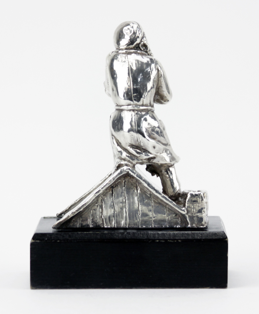 Yoel Zidon Sterling Silver "Fiddler on the Roof" on Wooden Base. Stamped. Good condition. Measures 7-1/2" H. Shipping $42.00 (estimate $50-$100)
