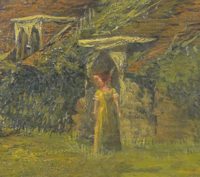 19th Century Unsigned Continental Oil on Canvas "Thatched Hut with Young Girl".