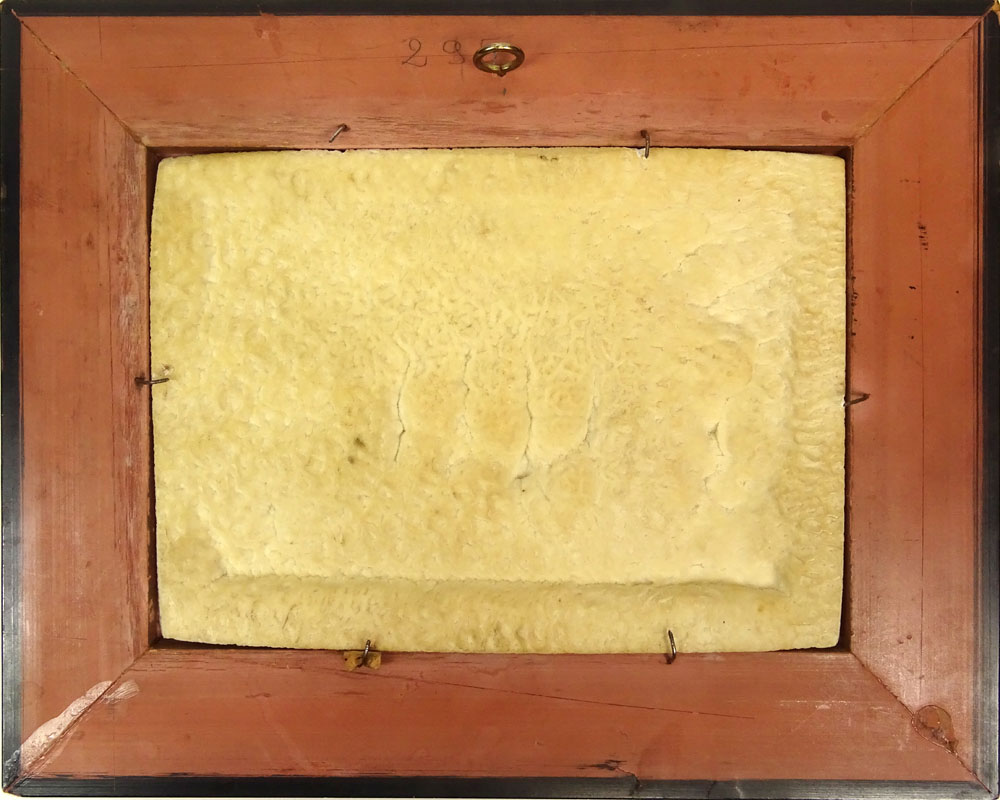 Vintage Faux Marble Relief Plaque. Unsigned. Minor Hairline or in Good Condition. Measures 6 Inches by 8-1/4 Inches. Frame Measures 9-1/2 Inches, 11-3/4 Inches. Shipping $65.00 (estimate $25-$50)