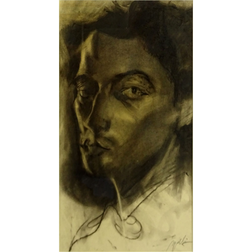 Circa 1930's Two Sided Ink and Charcoal Illustration- Portraits of Salvador Dali and Max Ernst. Signed illegibly, possibly by a Dada Artist. It has been reported to the Gallery, that this work may have been a prelude to a 1936 Time Magazine Cover story on Dali and Ernst. Toning from age or in good condition. Measures 17" x 9-1/2" (sight), frame measures 23-1/4" x 19". Shipping: $115.00 (estimate $1200-$1850)