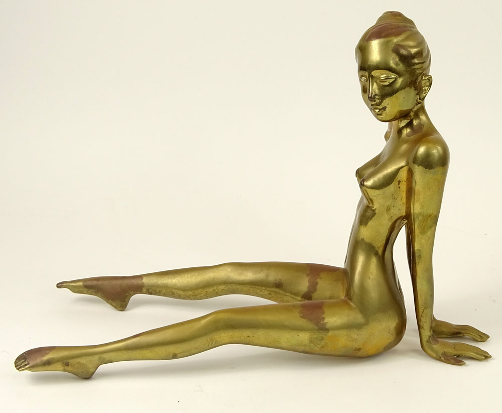 Contemporary Taiwanese Gilt Bronze Figurine "Seated Nude" Marked on bottom Surawongse 30/399. Wear to gilding. Measures 9-1/2" H. Shipping $65.00 (estimate $50-$100)