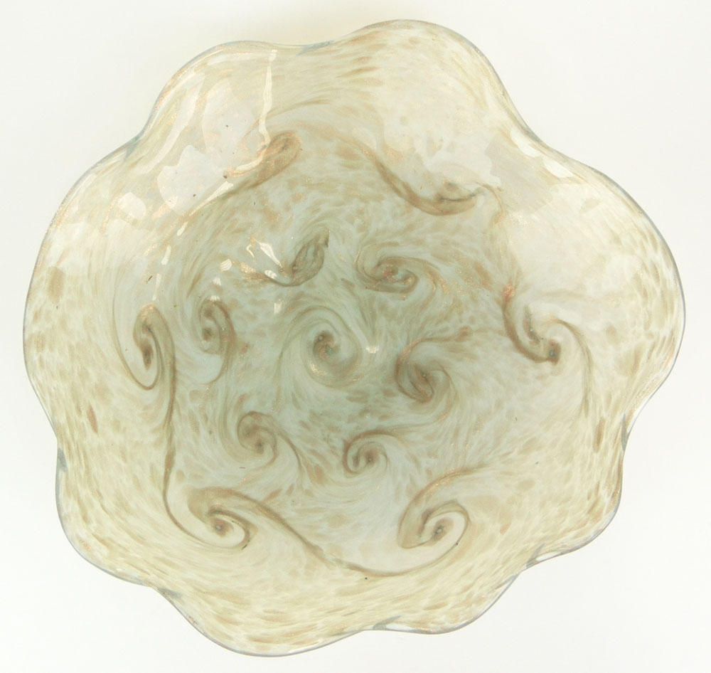 Vintage Art Glass Free-Form Shallow Bowl/Centerpiece. Unsigned. Surface Scratches to Base Otherwise Good Condition. Measures 3-1/4 Inches Tall and 16-1/4 Inches Wide. Shipping $88.00 (estimate $50-$100)