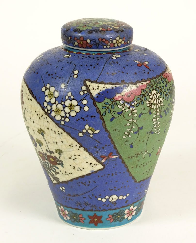 Antique Chinese Porcelain Cloisonné Decorated Lidded Ginger Jar.
