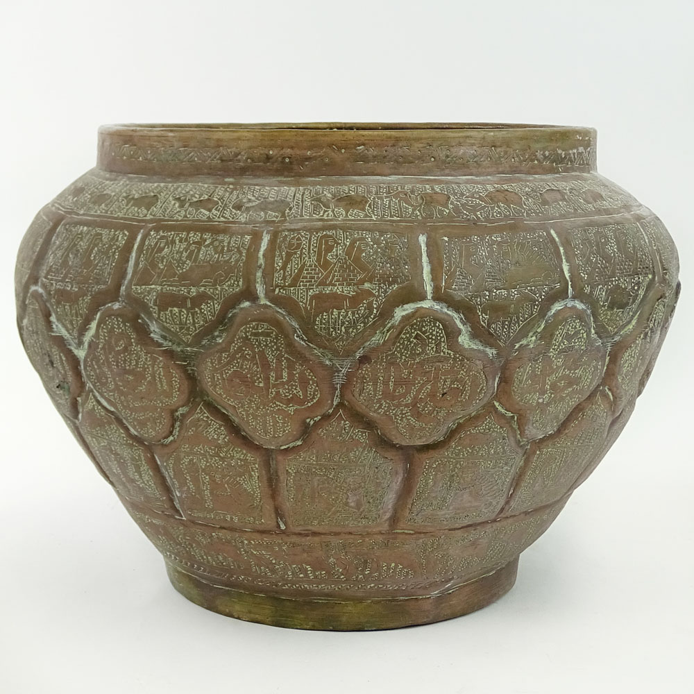 Vintage Persian Etched Copper Vase or Jardinière.Vintage Persian Etched Copper Vase or Jardinière.Vintage Persian Etched Copper Vase or Jardinière.Vintage Persian Etched Copper Vase or Jardinière.