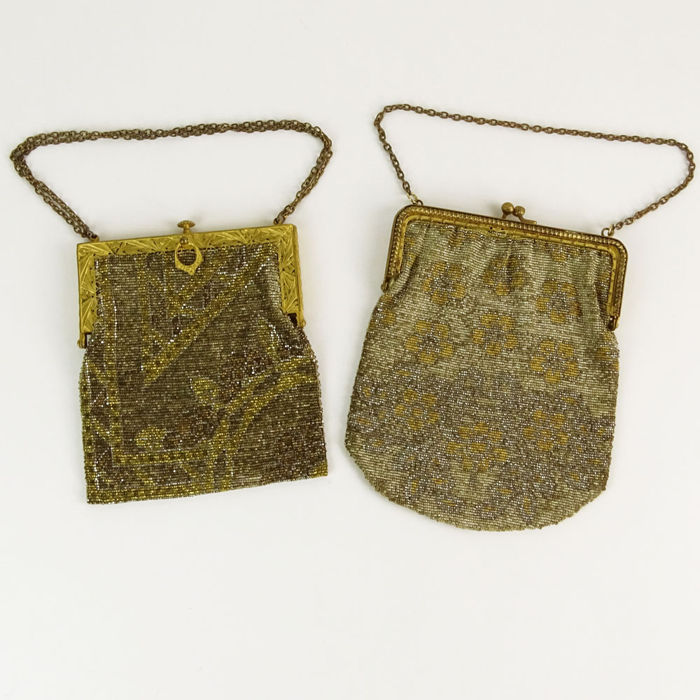 Lot of Two (2) French Beaded bags on gilt metal frames.