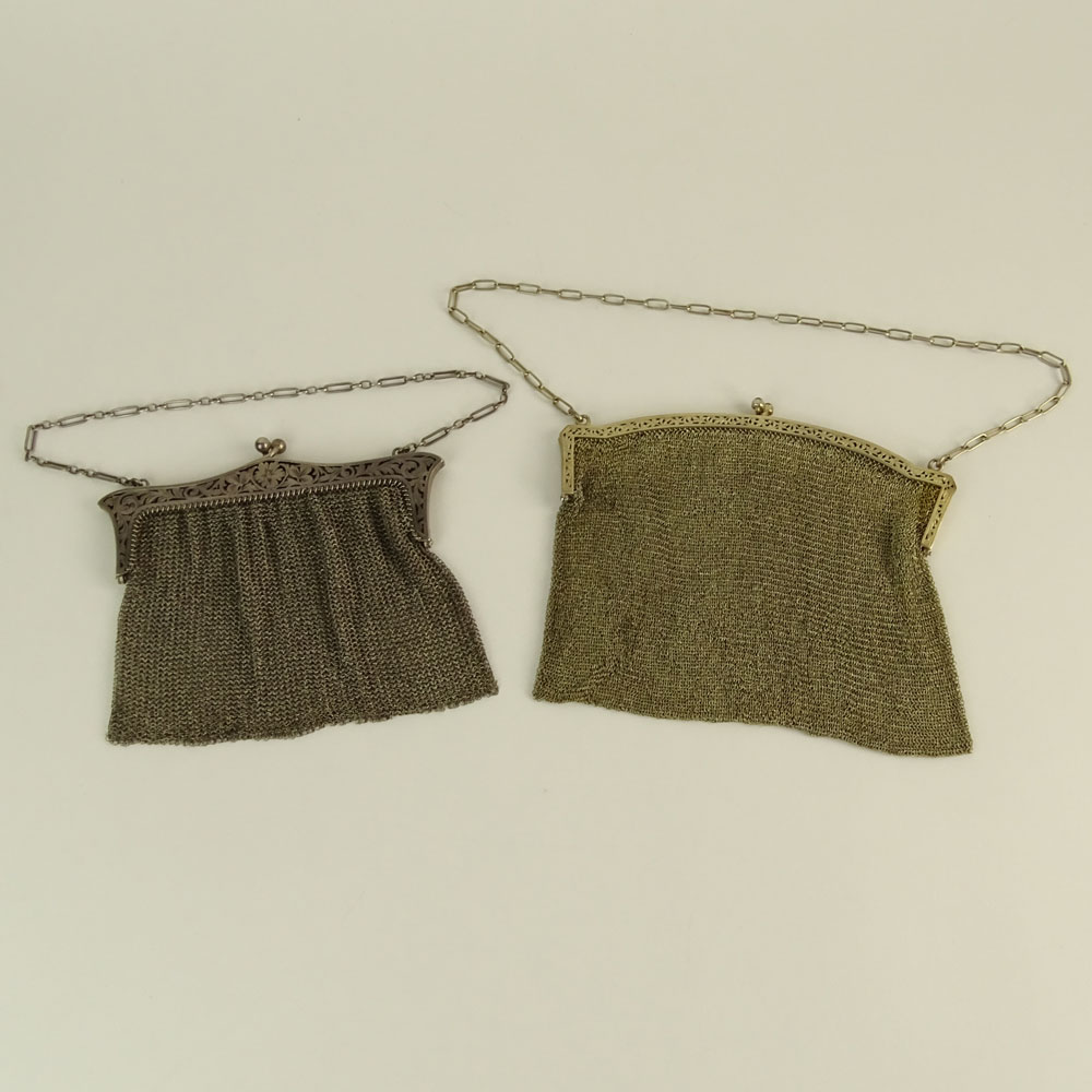 Lot of Two Early 19th Century Sterling Silver Mesh Bags.