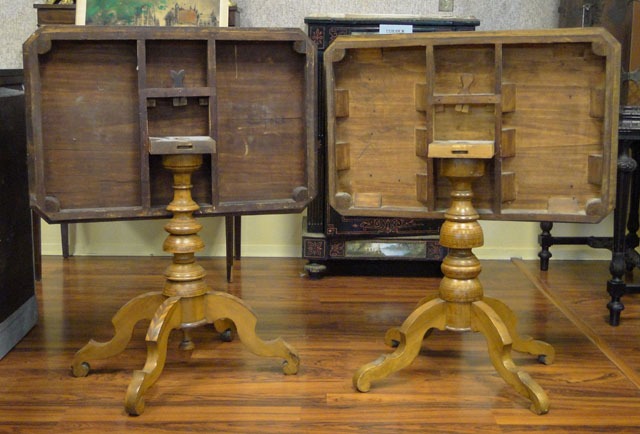 Lot of Two (2) Associated 19th Century Italian Inlaid Walnut Tilt-top Game Tables or Side Tables each with Marquetry Inlay of a Roman Charioteer and a Double Parquetry Border Comprised of Various Exotic Woods. Each Top of Rectangular Form with Canted Corners Supported by a Pedestal Base. Unsigned. Restorations and Splits to Veneer, One Missing Finial from Base Otherwise Good Condition to Very Good Condition. Each Measures 29-1/4 Inches Tall 35-1/4 Inches Wide and 23-1/8 Inches Deep. Shipping: Third Party (estimate $3000-$4000)