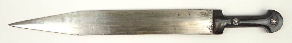 20th Century Continental Broad Sword with Carved Horn Grip and Leather Scabbard.