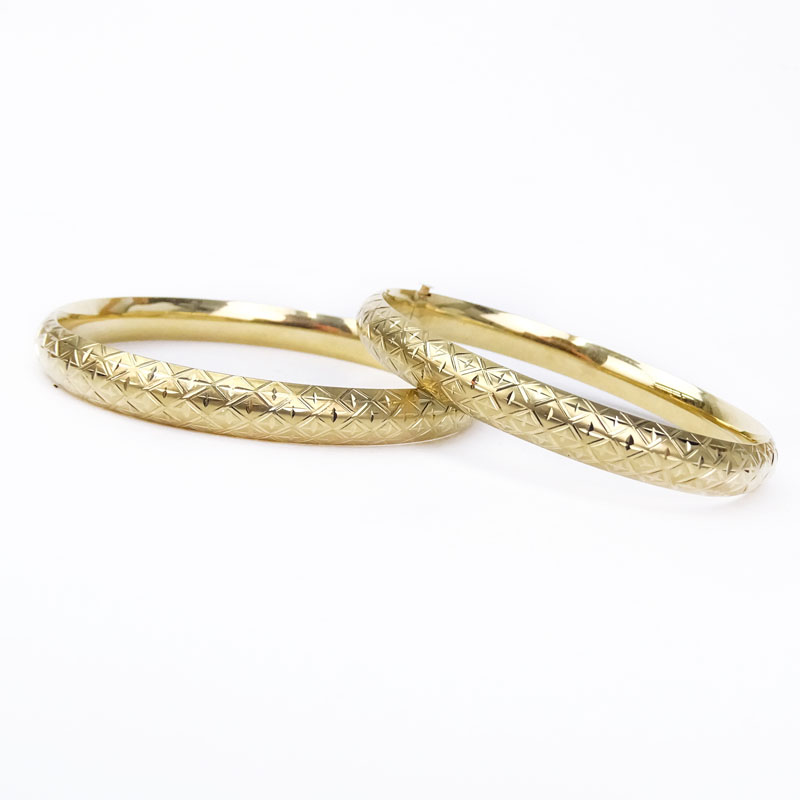 Pair of Vintage 14 Karat Yellow Gold Hinged Bangle...