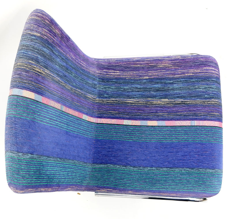 Set of Six (6) Giovanni Offred for Saporiti Italia Upholstered and Cantilever Chrome Side Chairs. Fabric label on underside, needs cleaning. Some normal wear and discoloration to upholstery. Measures 33-1/2" H x 21" W. Shipping: Third party. (estimate $300-$400)