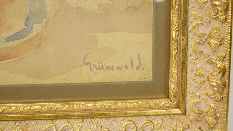 Isaac Grünewald, Swedish (1889-1946) Watercolor on Paper, Still Life with Cyclamen. Signed lower right. Toning, possible fading. Measures 14-1/8" H, 9-3/8" W (sight); frame measures 18-1/2" H, 13-1/2" W. Shipping $85.00 (estimate $700-$1000)