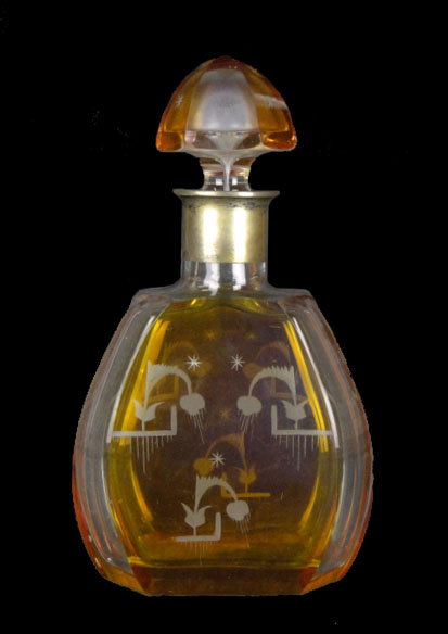 Antique Swedish Amber Cut to Clear Glass Decanter with Sterling Silver Mounting. Signed with Swedish hallmarks on sterling mounting. Some water residue, minor scuffs on otherwise good condition. Measures 9-1/4" H 5" W. Shipping $55.00 (estimate $100-$200)