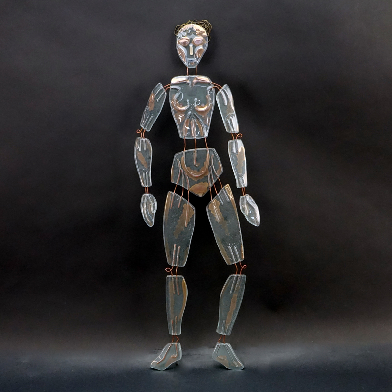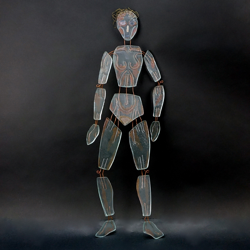 Peter Mangan, American (20th C.) Glass and Metal Male Figural Sculpture Signed 1991.