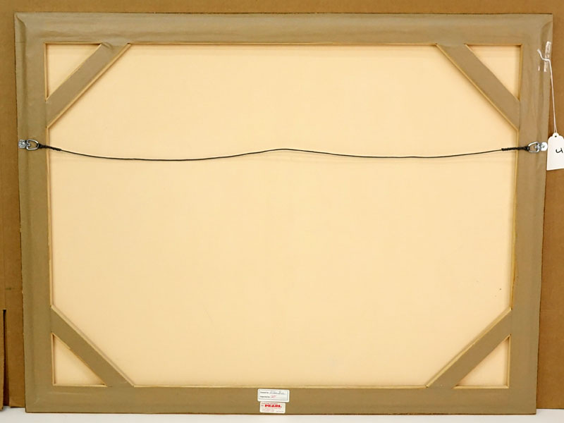 Contemporary Haitian Acrylic On Canvas "Jungle Scene" Signed lower right Jacky ____. Good condition. Measures 29-1/2" x 38", frame measures 31-1/4" x 41". Shipping: Third party. (estimate $400-$600)