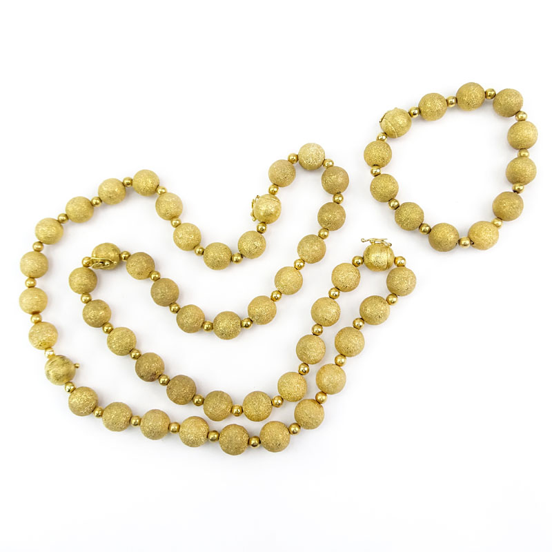 Vintage Large and Heavy Italian 18 Karat Yellow Gold Bead Necklace and Bracelet Suite.
