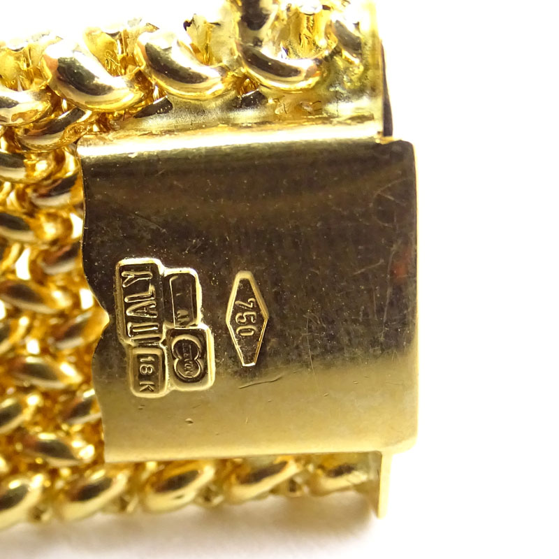 Vintage Italian Thick and Heavy 18 Karat Yellow Gold Mesh Link Necklace. Stamped 750 18K, Italy. Very good condition. Measures 18" L, 3/4" W. Approx. weight: 115.5 grams. Shipping $32.00 (estimate $2800-$3200)