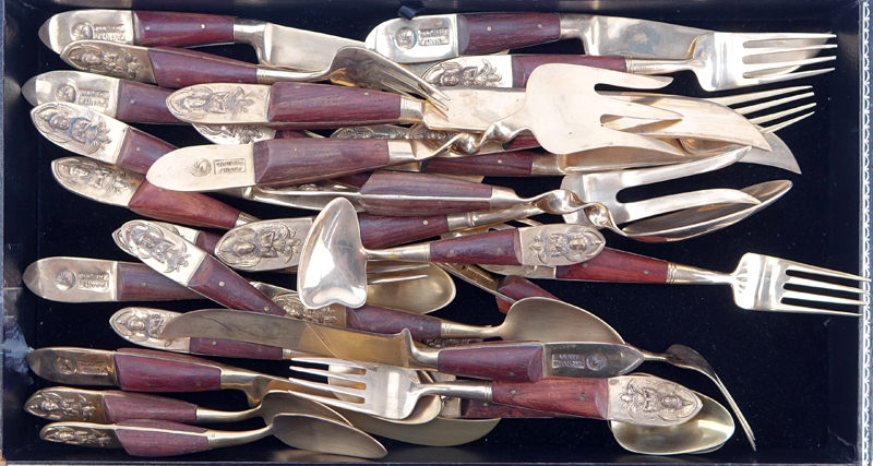 Twenty Nine (29) Pc Anant Thailand Brass and Wood Handle Flatware.