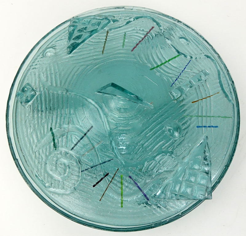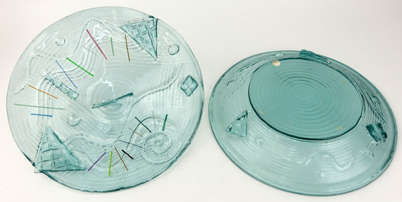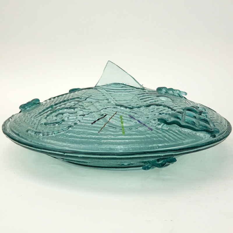Mid Century Modern Covered Molded Glass Dish. Unsigned. Good condition. Measures 6" H x 12-1/2" Dia. Shipping $72.00 (estimate $100-$150)