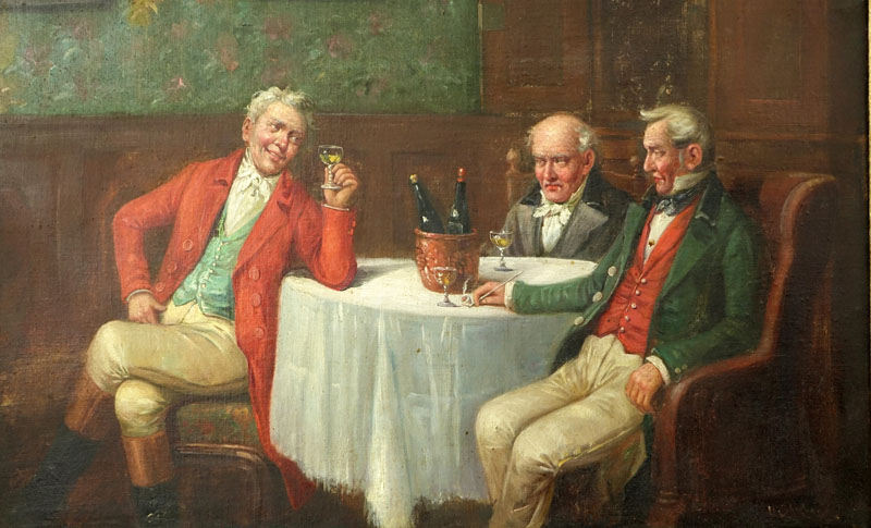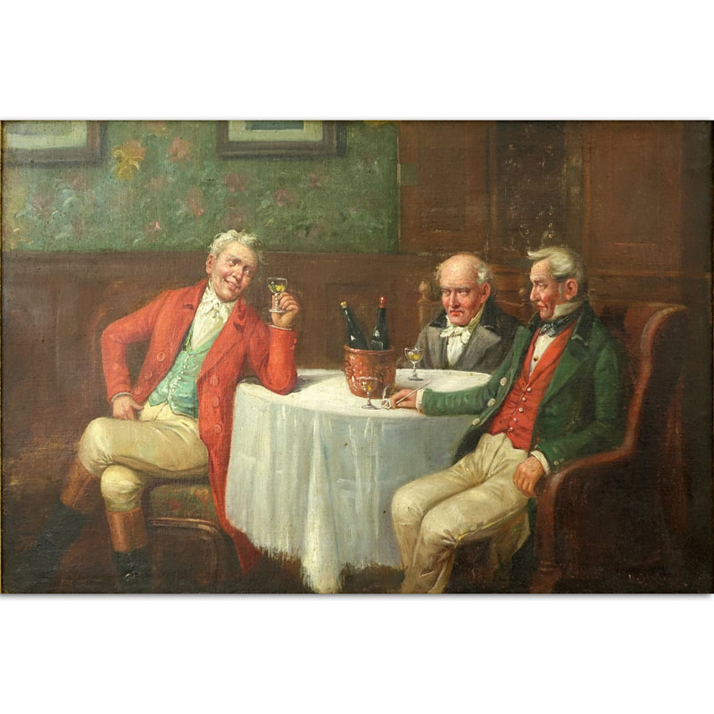19/20th Century Oil Painting On Canvas "Imbibing". Signed lower right H. Sar___?.