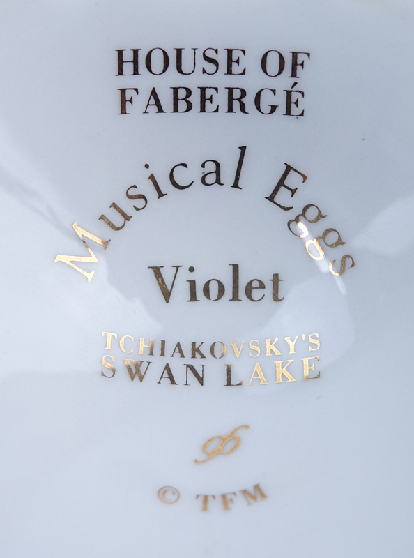 Lot of Seven (7) Porcelain Egg Shaped Musical and Non Musical Boxes. Two are Faberge, two Paris Royal , or else unsigned. All in good condition. Largest measures 6" H. Shipping $46.00 (estimate $100-$150)