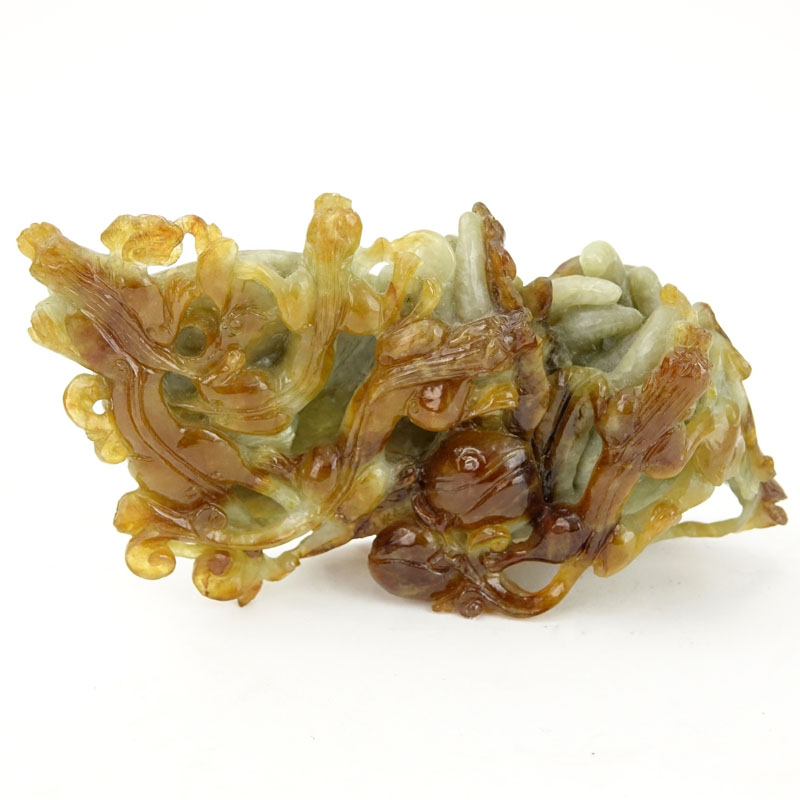 Chinese Jade Salamanders and Dragons Figural Carving. Light green with dark amber color splashes. Natural wear and nicks or else good condition. Measures 3-1/2" H x 6-1/4" W. Shipping $48.00 (estimate $200-$300)