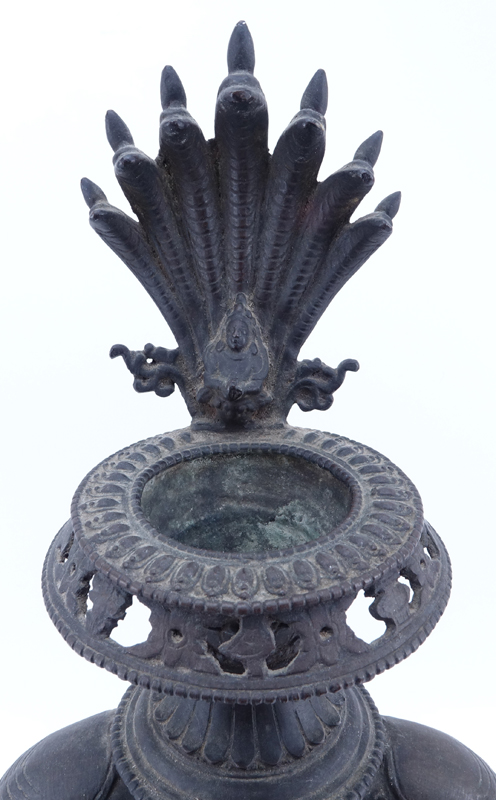 Early to Mid 19th Century Ancient Style Chinese/Tibetan Bronze Tripod Vessel with Spout.