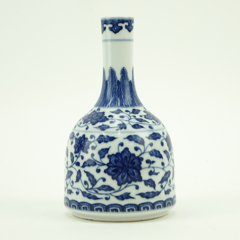 Chinese Blue and White Porcelain Long Neck Vase. Signed. Good condition. Measures 6-1/2" H. Shipping $48.00 (estimate $200-$300)