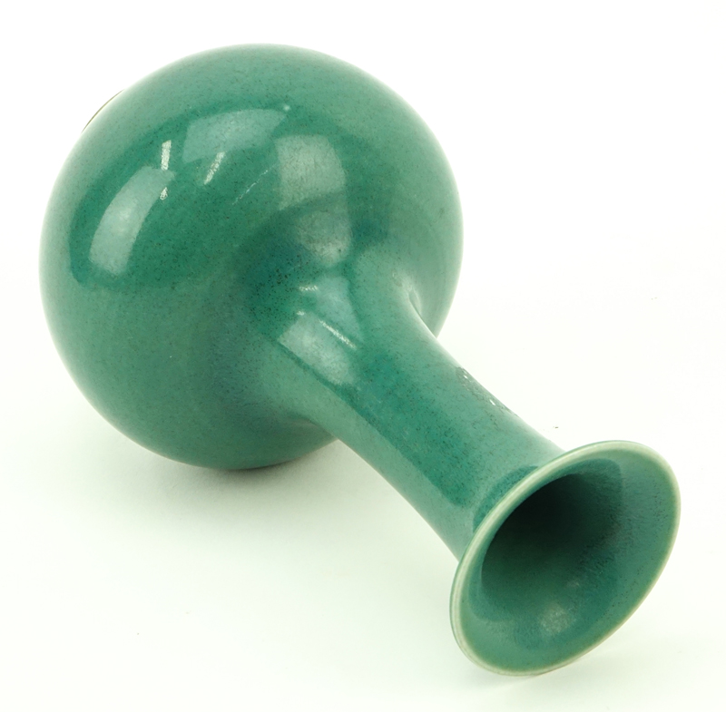 Chinese Tea Dust Style Porcelain Vase. Signed with six character mark and rings on underside. Normal wear on underside. Measures 7-1/2" H. Shipping $48.00 (estimate $200-$300)