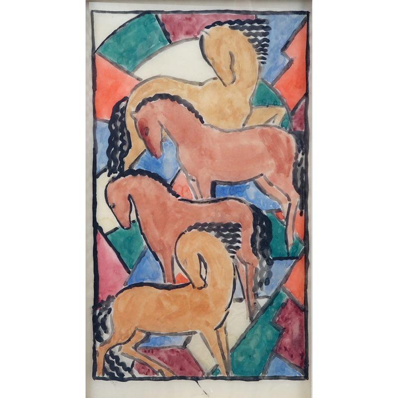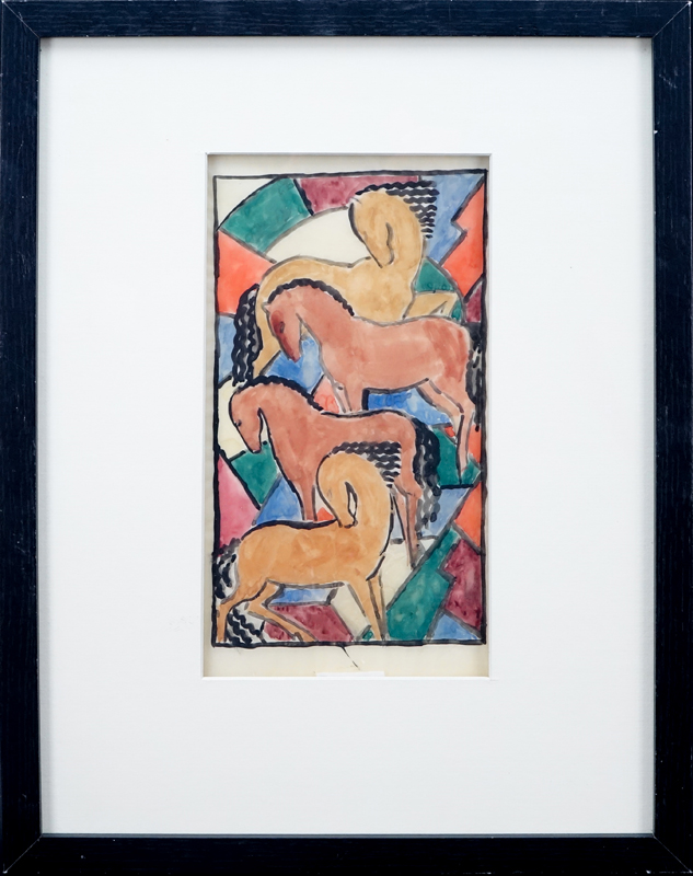 Attributed to: Antonio Goncalves Gomide, Brazilian (1895 - 1967) Watercolor on paper "Sketch For Window". Unsigned. Toning from age or in good condition. Measures 10-1/8" x 5-3/8" (sight), frame measures 17" x 13". Shipping $125.00 (estimate $300-$500)