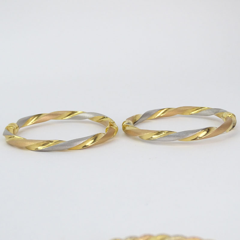 Collection of Five Vintage Italian Tri-Color Gold Bangles Including Three (3) 18 Karat and Two (2) 14 Karat.