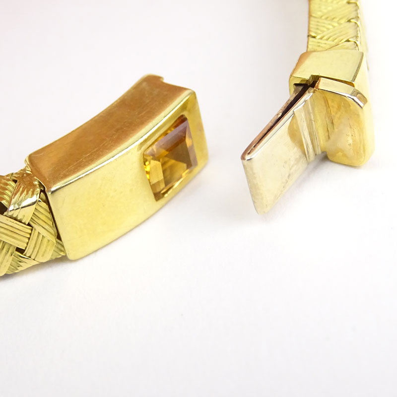 Vintage Italian Finely Made Citrine and 18 Karat Yellow Gold Flexible Link Bangle Bracelet.