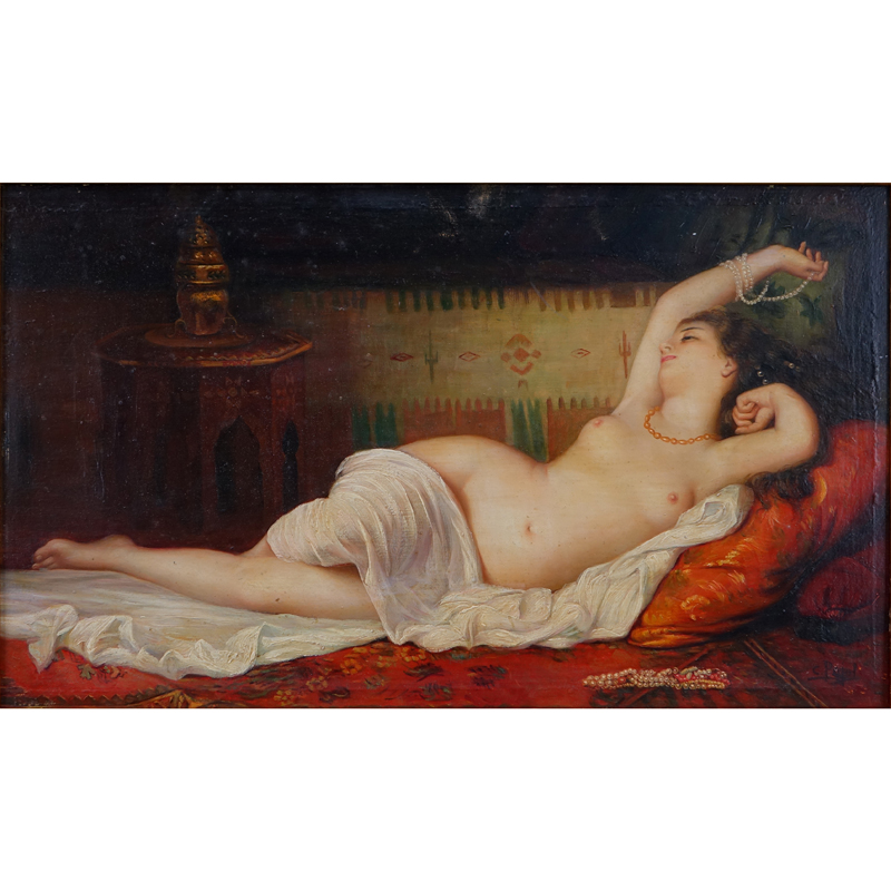 Clement Pujol de Guastavino, Spanish (1850 - 1905) Oil on panel "Orientalist Odalisque".