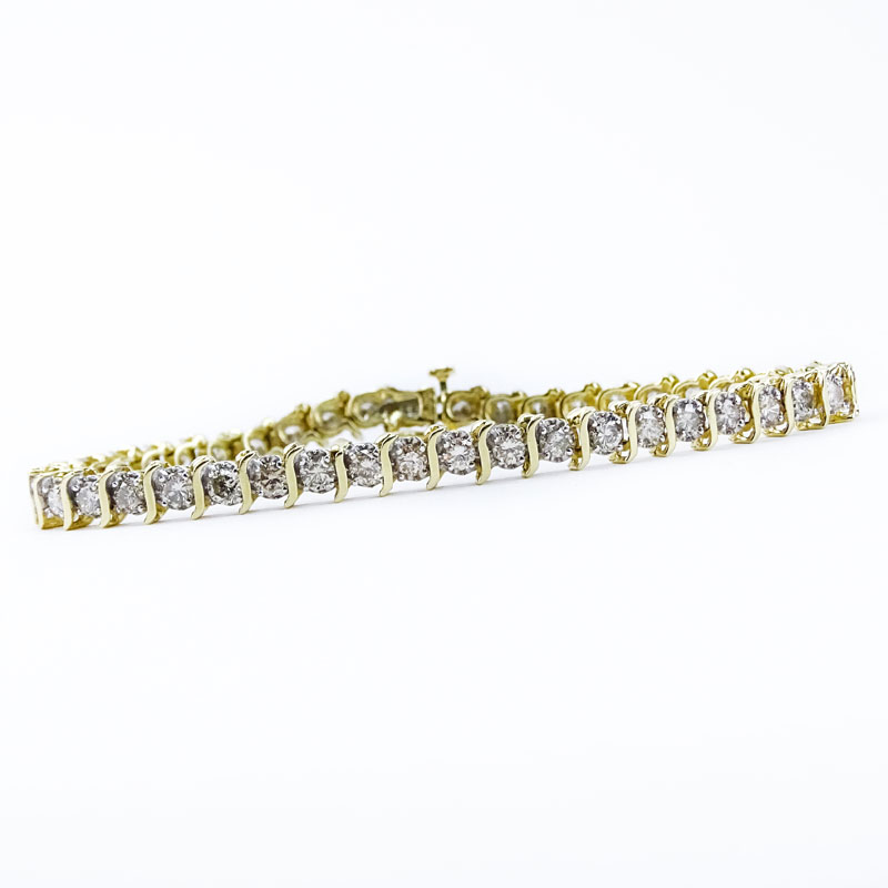 Vintage Approx. 5.0 Carat Round Brilliant Cut Diamond and 14 Karat Yellow Gold Tennis Bracelet.