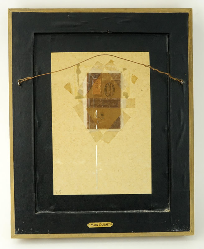 Mary Cassatt, American (1844-1926) Watercolor on paper "Study Of A Woman". Stamped. Provenance: Matilde X Sale" (Mathilde Valet, Chateau de Beaufresne, France) Galerie A.M. Reitlinger Paris May-June 1931 (Mary Cassatt's Friend and largest collector). Acquired by mother of current owner from Richard Feigen Gallery, Chicago in 1958 and thus by inheritance to the current owner. Toning from age or in good condition. Measures 13" x 9-3/4", frame measures 16-7/8" x 13-1/2". Shipping $115.00 (estimate $15000-$20000)