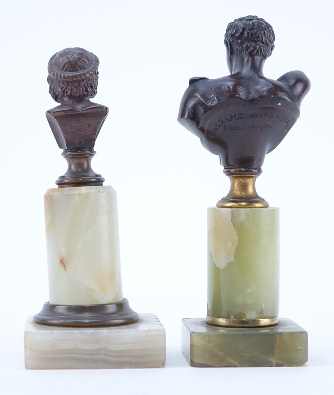Two (2) Small German Late 19th Century Bronze Busts on Onyx Bases.