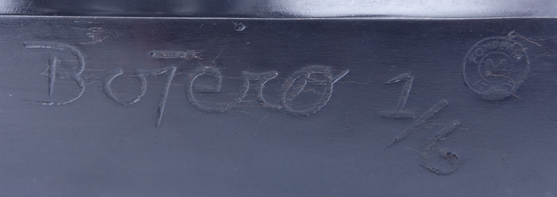 After: Fernando Botero, Colombian (born 1932) "Nude on Horseback" Bronze Sculpture. Signed and numbered 1/6, with Fondera Italy foundry mark. Good condition. Measures 24" H x 19" W x 10-1/4" D. Shipping: Third party. (estimate $1000-$1500)