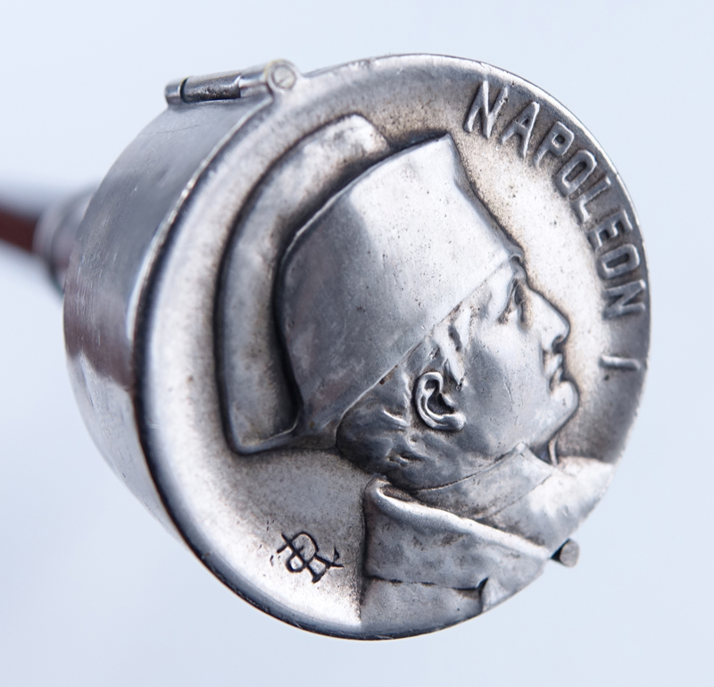 Antique Napoleon I French Silver Pill Box Walking Stick.