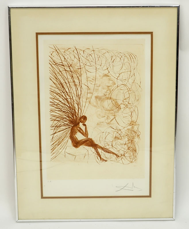 Salvador Dali, Spanish (1904-1989) Color Etching "Napoleon & The Angel" Signed and Labelled "E.A" in Pencil Lower. Good condition. Measures 20-1/2" H x 13-1/2" W (sight), frame measures 27-1/4" H x 20-1/2" W. Shipping $115.00 (estimate $400-$600)