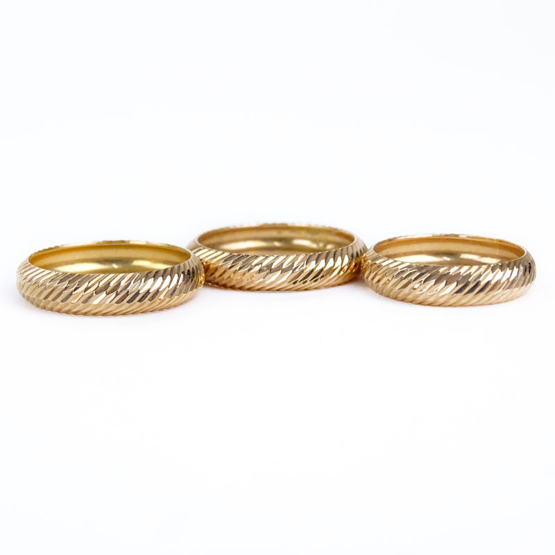 Seven (7) 10 Karat to 14 Karat Pink and Yellow Gold Ring Lot. Ring sizes 3-7. Good condition. Approx. total weight: 14.9 grams. Shipping $32.00 (estimate $100-$150)