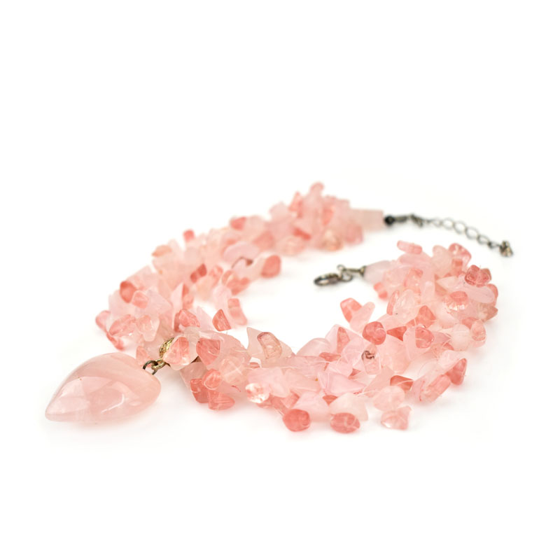 Three (3) Vintage Quartz Beaded Necklaces. Includes Chunky rose quartz nugget 17-1/2" , rose quartz choker with heart pendant 15", amethyst choker with pendant 16". Unsigned. Good condition. Shipping $30.00 (estimate $100-$150)
