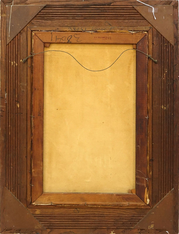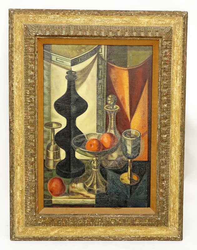 19/20th Century Oil on Canvas "Still Life", unsigned. Heavy rubbing to canvas, slight tear lower center. Measures 27" H x 18" W, frame measures 37-1/2" H x 28-1/2" W. Shipping $175.00 (estimate $200-$300)